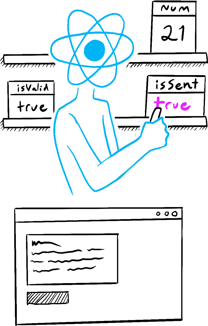 - يخزن React الحالة خارج مكونك، كما لو كانت على رف.